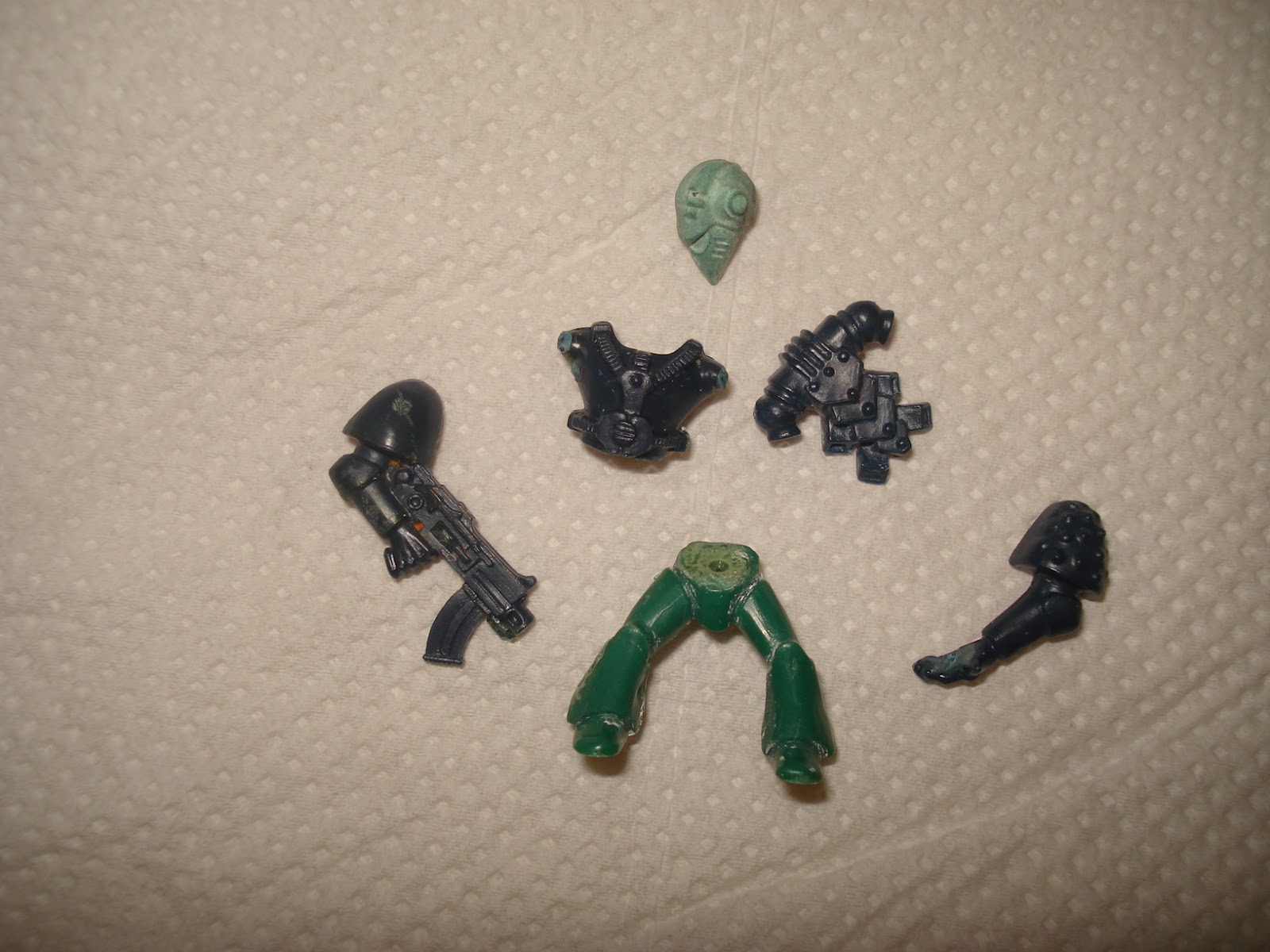 It appears that the production company making the plastic figures was using whichever colour plastics they had left up after making the figures for Ultra Marines, Advanced Space Crusade, Spack Hulk, Space Marine, etc et al....